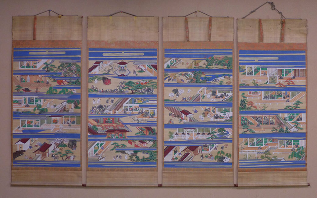 仏教美術『大谷本願寺親鸞聖人之縁起御絵伝四幅対』江戸時代 絹本肉筆画 本願寺釈本如花押 検/浄土真宗親鸞聖人 真作保証品