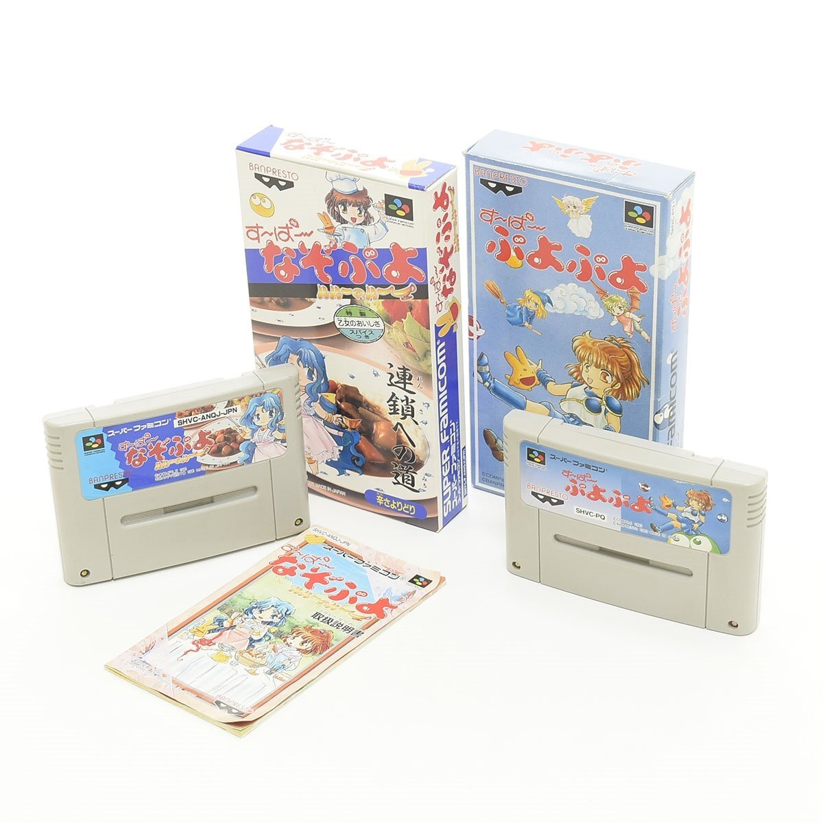 > ▽523012 【レトロゲーム】SFC す~ぱ~ぷよぷよ す~ぱ~なぞぷよ ルルーのルー ソフト2本 箱付き スーパーファミコン
