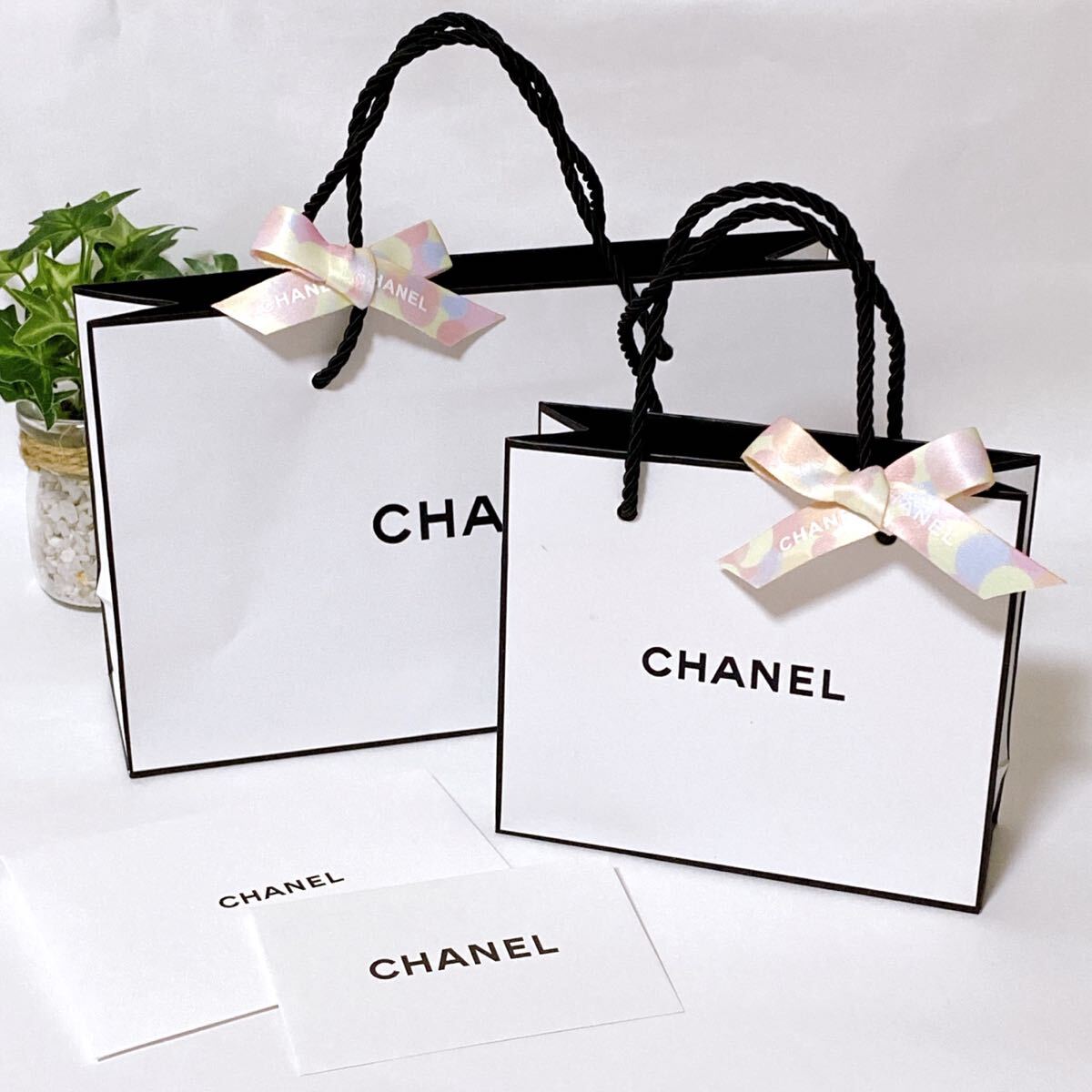 - シャネル「CHANEL」ショッパー 2枚組 封筒2種 (6050) 正規品 付属品 ショップ袋 ブランド紙袋 デパコス袋 折らずに配送 ホワイト