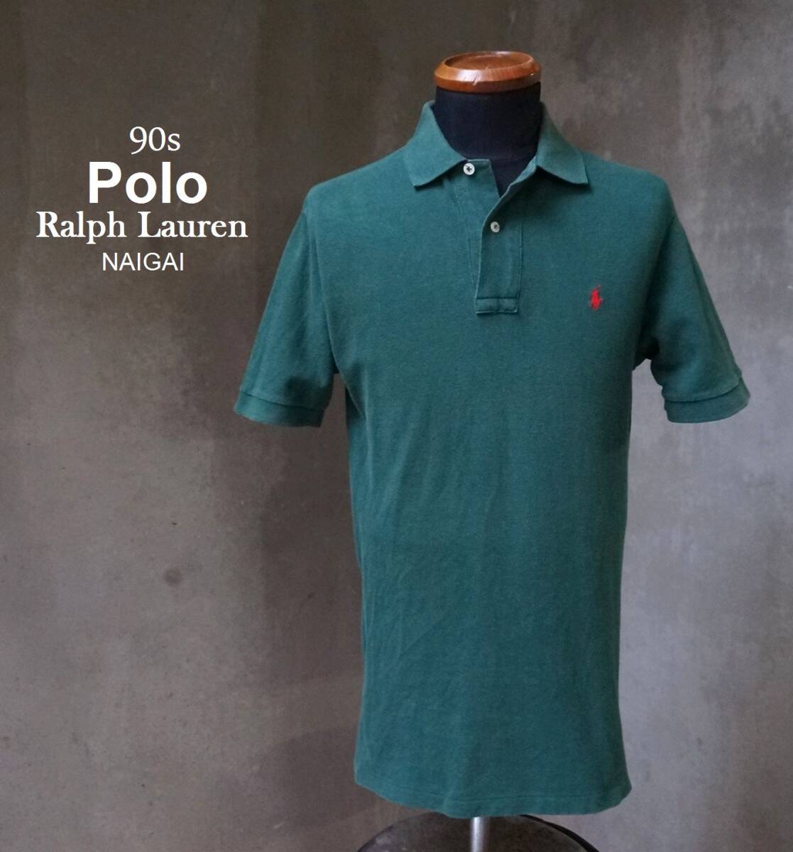 > 90s ナイガイ製 ポロ Polo ラルフローレン Ralph Lauren 深緑 ダークグリーン 鹿の子 半袖 ポロシャツ M