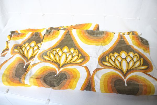 - ベルギー ヴィンテージ 古いカーテン 2枚セット オレンジの模様 美品