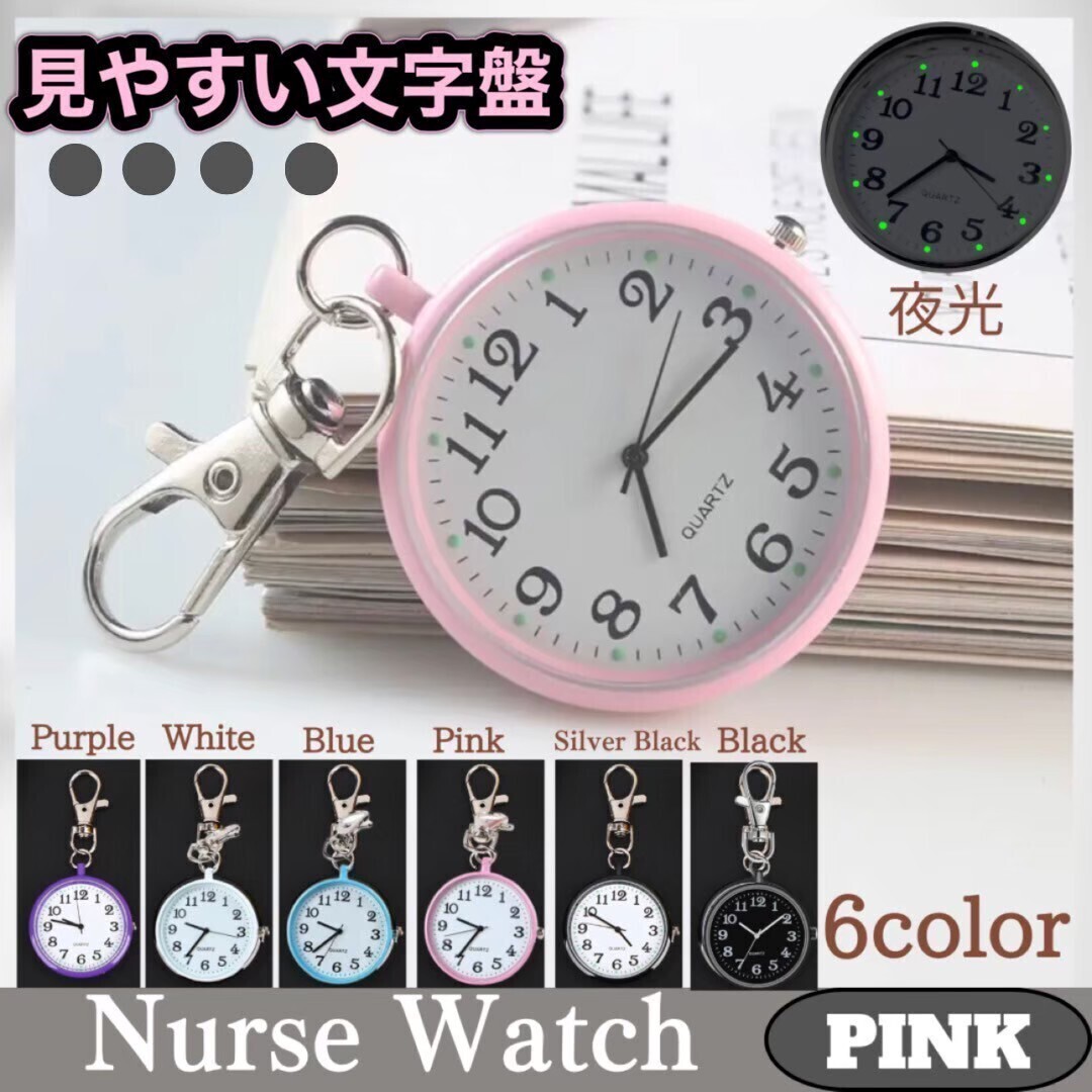 - ナースウォッチ 懐中時計 文字盤 カラビナ 蓄光 キーホルダー ピンク