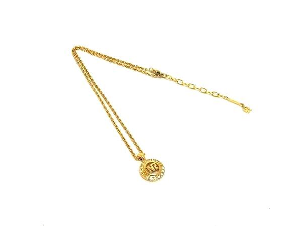 - ■美品■ NINA RICCI ニナリッチ ラインストーン ロゴモチーフ ネックレス ペンダント アクセサリー レディース ゴールド系 DI3610