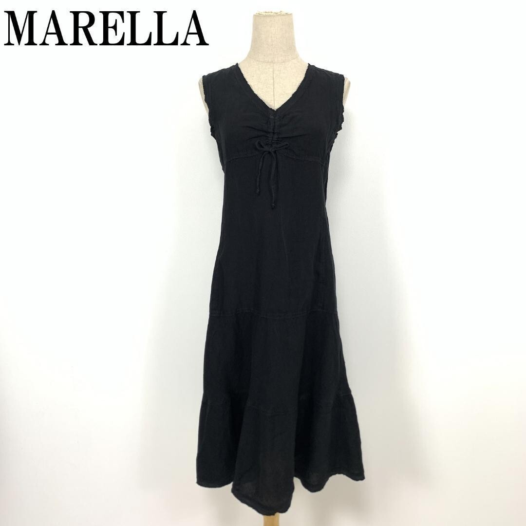 - LA7577 マレーラ MARELLA ロングワンピース フレア Vネック ティアードワンピース リネン100% ノースリーブワンピース ブラック 38