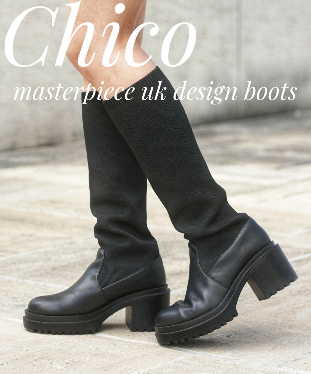 > 最値!新品!定11880円!名作英国デザイン!チコ(Chico)ソックス ロング チャンキーブーツ!ブラック!黒 サイズ表記M 23.5cm相当 箱付き