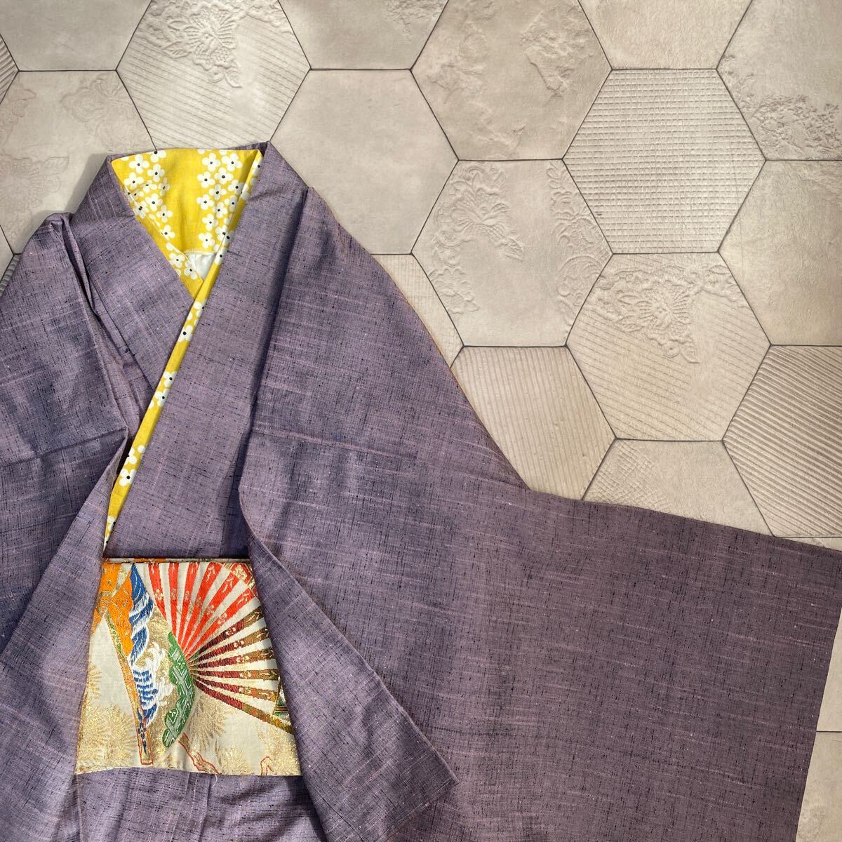 - アンティーク 着物 紬 薄紫 正絹 昭和レトロ 大正ロマン モダン 和洋折衷コーデ リメイク 25こ14-8s