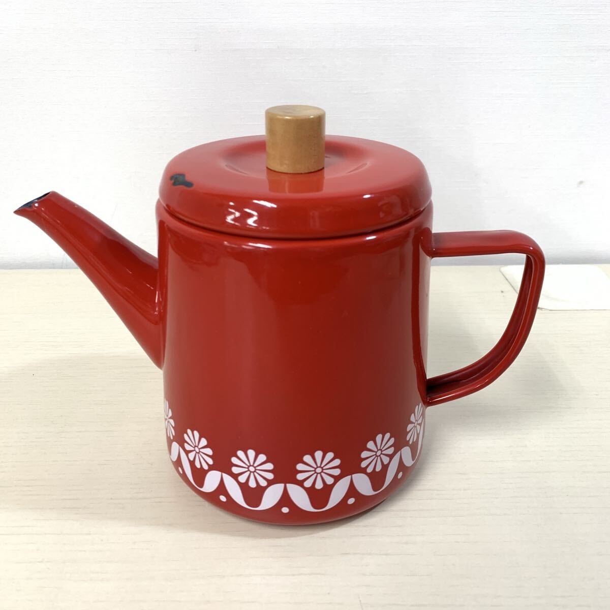 ホーロー コーヒーポット 昭和レトロ 赤 レッド ポット 琺瑯 やかん ケトル(10147H