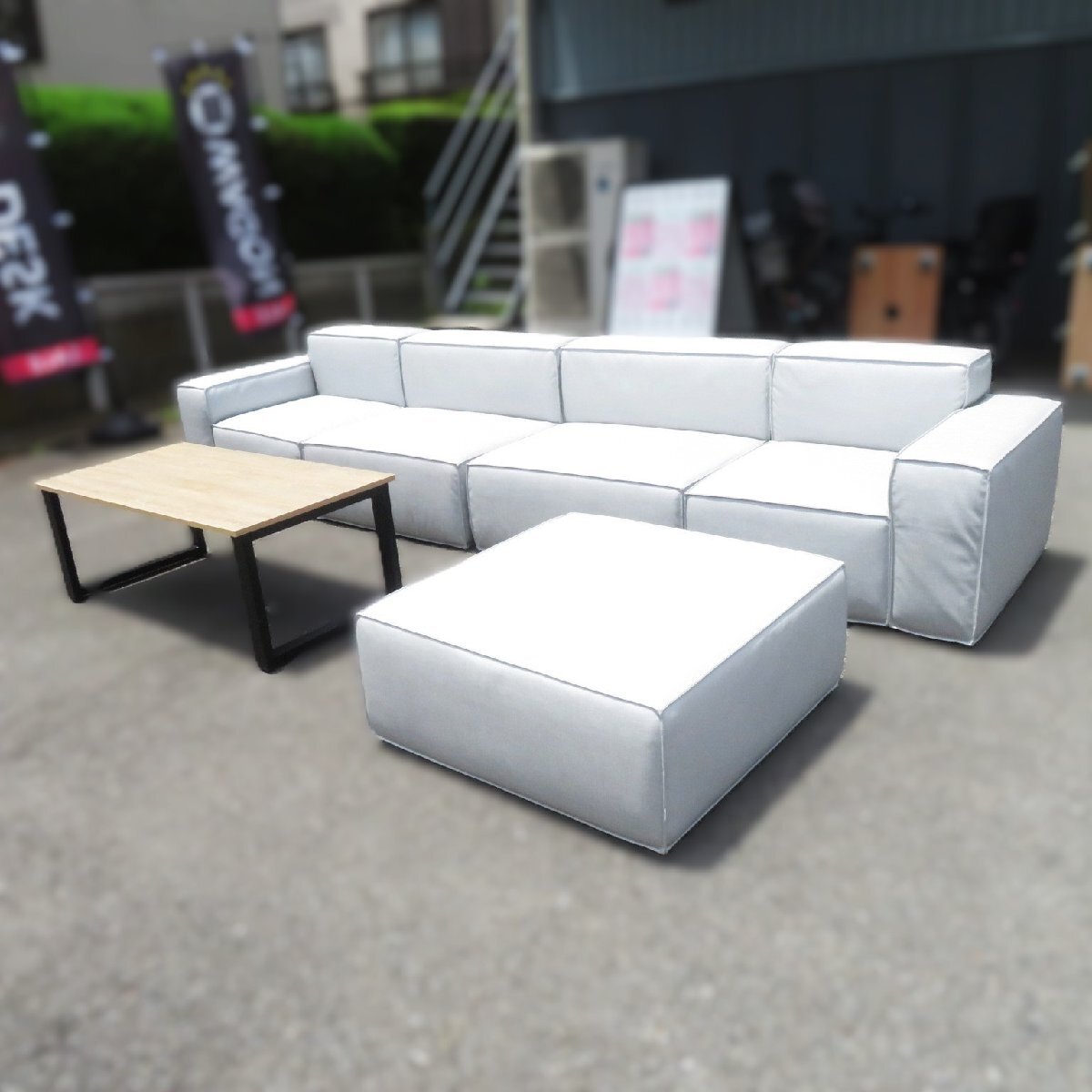 > oliver オリバー ソファセット グレー 応接 椅子 イス ダイニング オットマン シンプル 応接家具 テーブル AG17897 中古オフィス家具