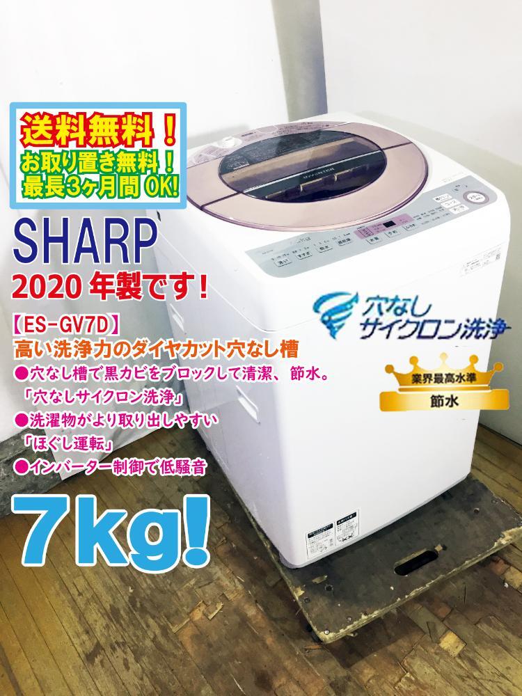 > 送料無料★2020年製★極上超美品 中古★シャープ 7kg 穴なしサイクロン洗浄!「ガンコ汚れコース」搭載★洗濯機【ES-GV7D-P】FMSC