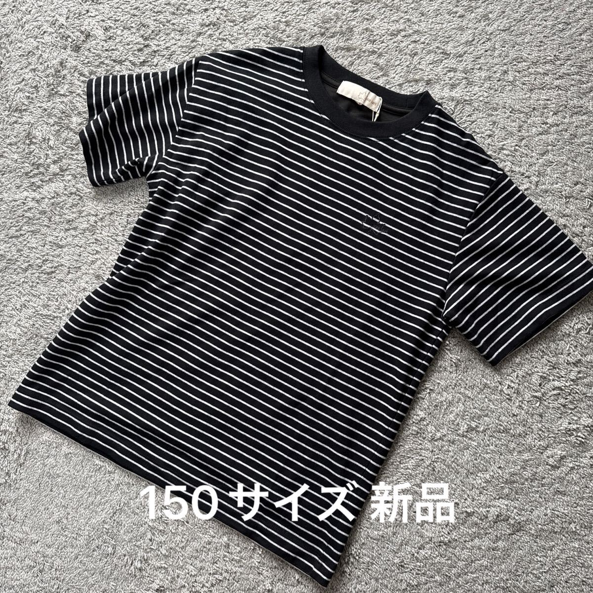 > こども服 ポイント刺繍ボーダー半袖Tシャツ黒150★ゆうパケット配送可能★新品32