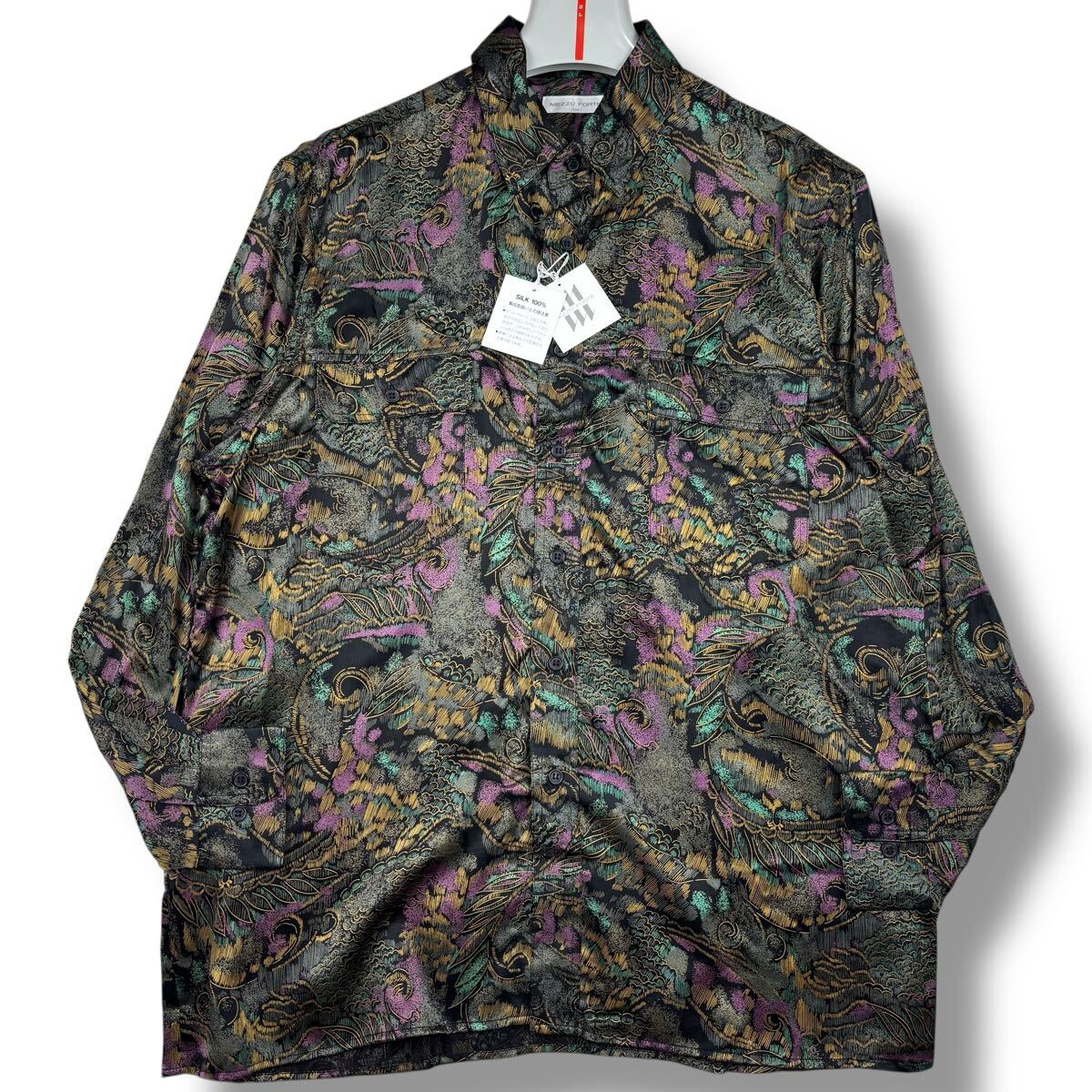 - 1円 新品未使用タグ付き L~XL.LL MEZZO FORTE 長袖シャツ 羽織り 柄シャツ 総柄 花柄 サンドウォッシュ加工 シルク100% 絹 メンズ M