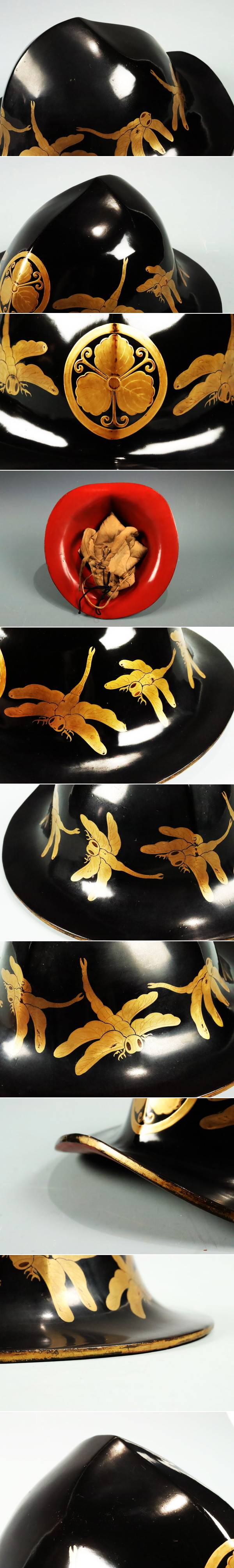 > 【ASAHI】大名家伝来品 家紋入 蜻蛉尽くし蒔絵陣笠 勝虫 内朱塗 変わり陣笠 甲冑 時代武具 時代名品[78176qqp]