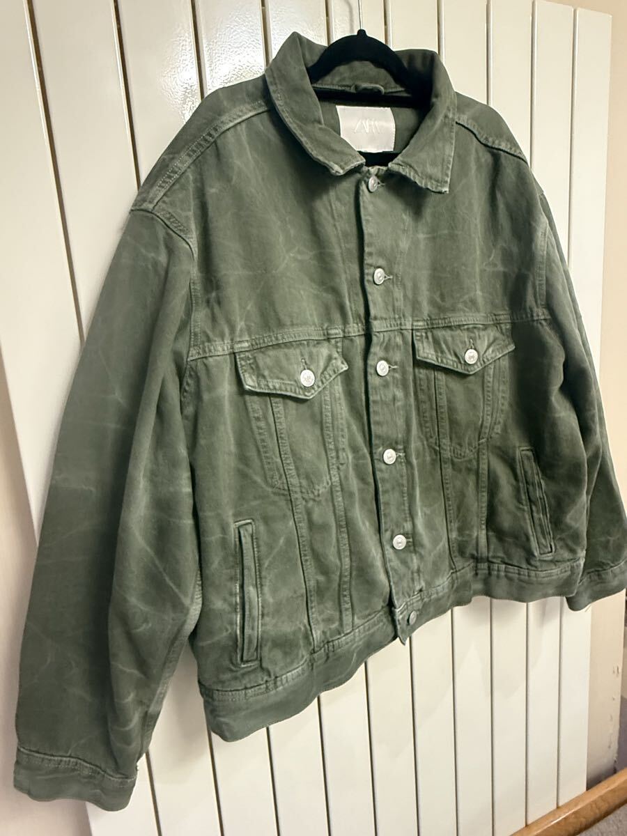 - 希少 ZARA ザラ デニムジャケット Lサイズ モスグリーン系 グリーン系 緑色