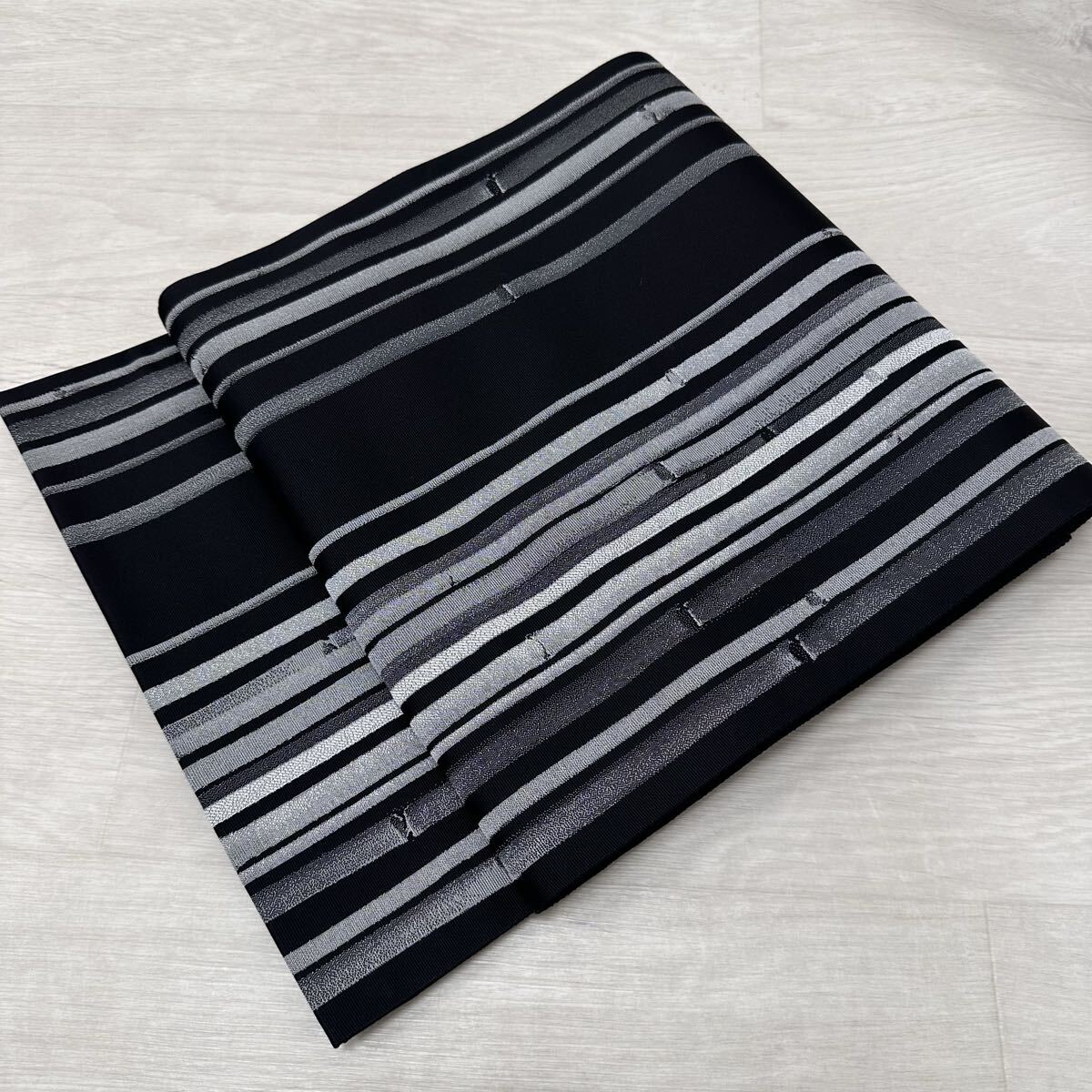 > 袋帯 モノトーン シックな竹模様 化繊 着物 Q-011