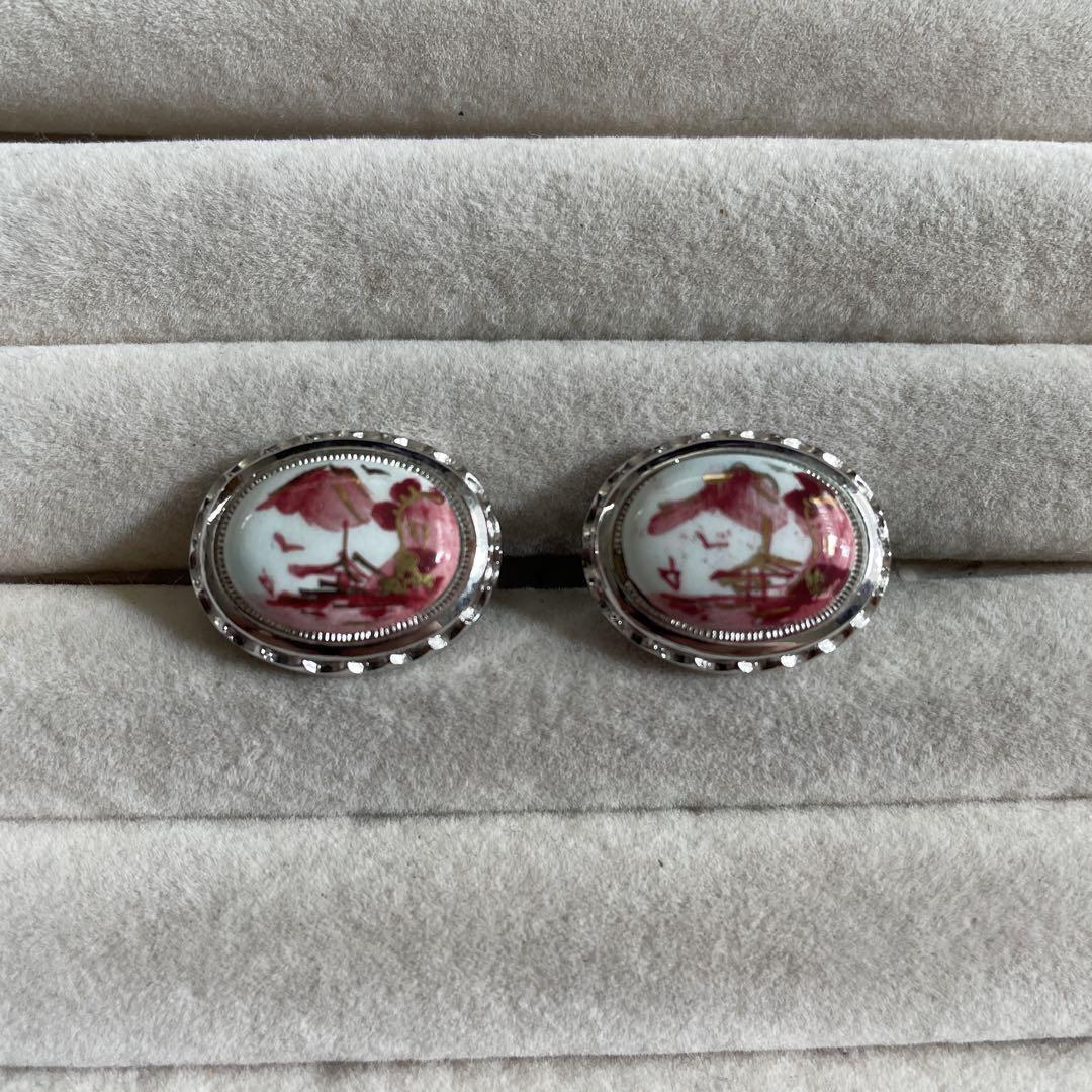 - ヴィンテージ 陶器製 風景柄 カフリンクス