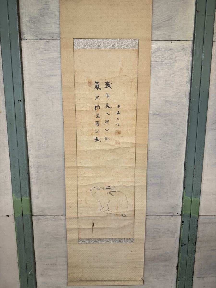 - 真作 竹田黙雷 東山左邉 『 氣義幸飛入廣寒鄕 實精星壽筆長 』 肉筆 掛け軸 うさぎ 兎 臨済宗建仁寺派管長 禅語 禅宗書画 茶道 京都