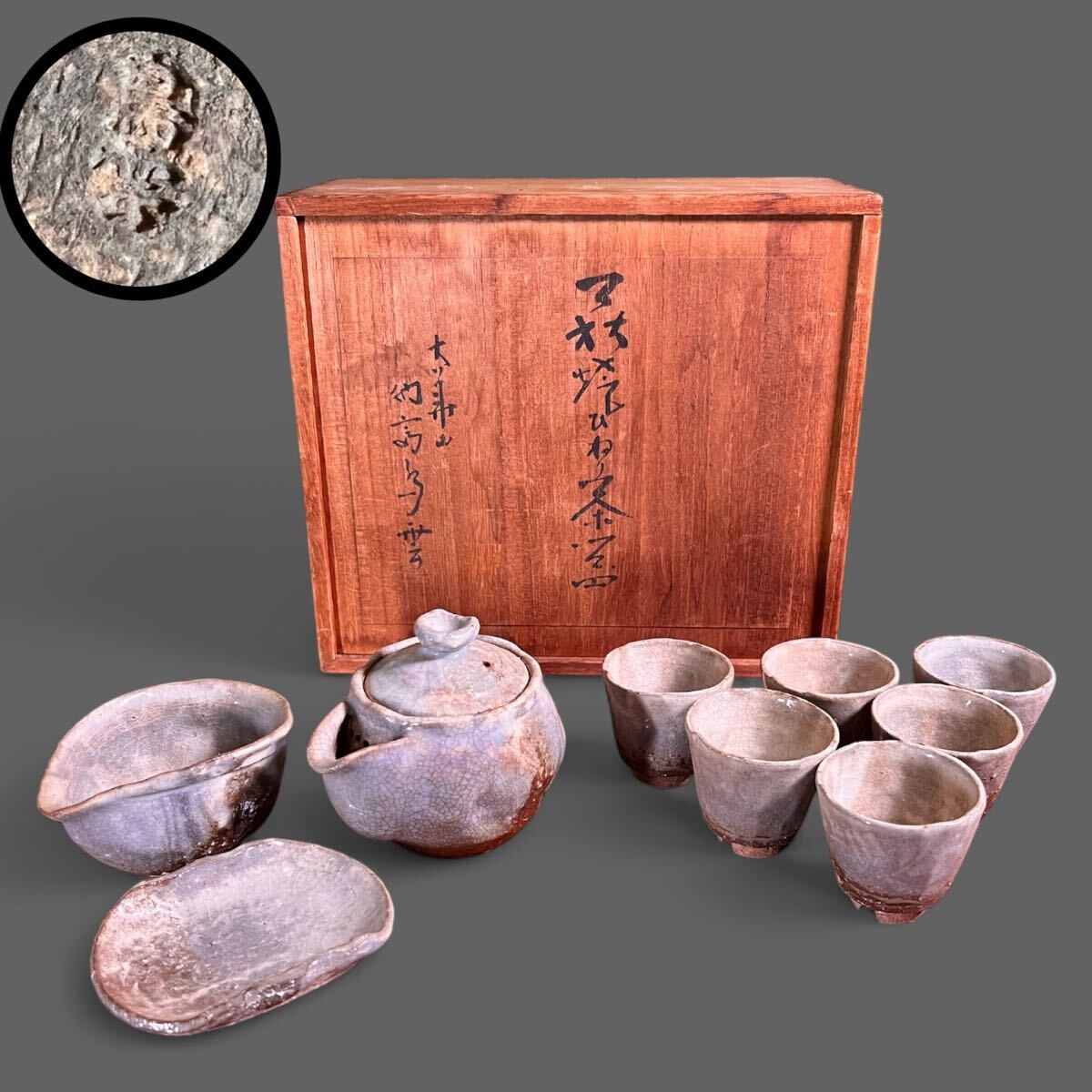 > 管A772 時代物 納富鳥雲 萩焼ひねり茶器揃 煎茶道具 宝瓶 煎茶碗 湯冷まし 共箱 骨董 蔵出時代物