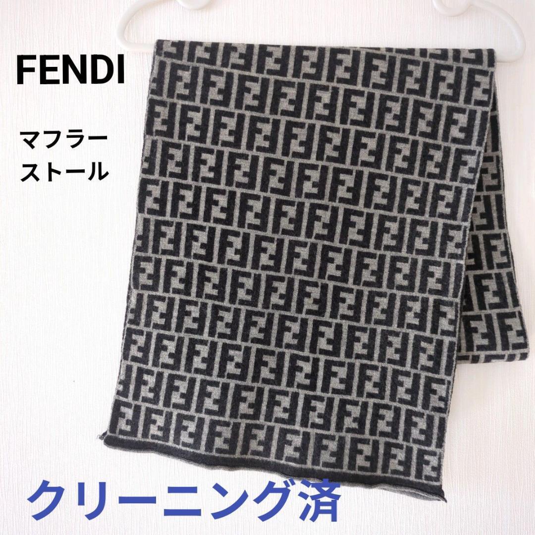 - FENDI フェンディ ズッカ柄 マフラー ブラック グレー ウール