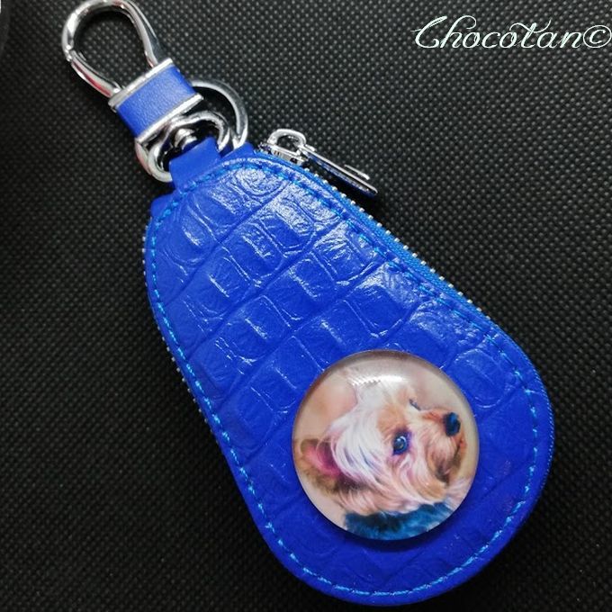 - 【送料無料】ヨークシャーテリア 青 ドーム キーケース【新品】