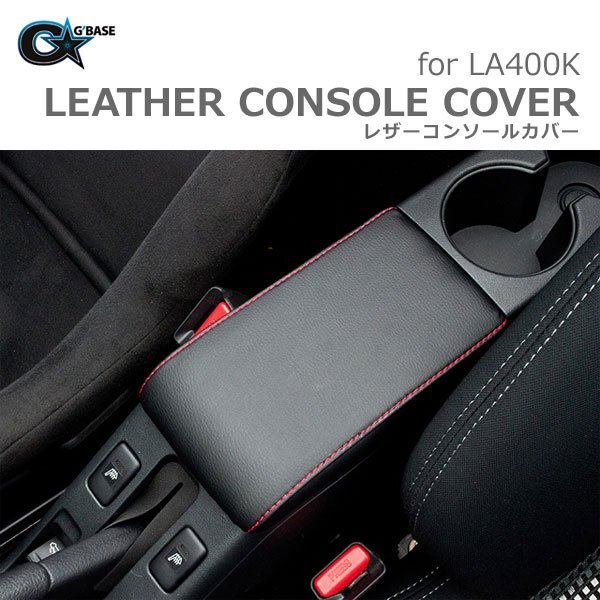 > G'BASE ジーベース LA400K コペン用 レザーコンソールカバー 鍵穴無 ブラックレザー×レッドステッチ (LCC-008)