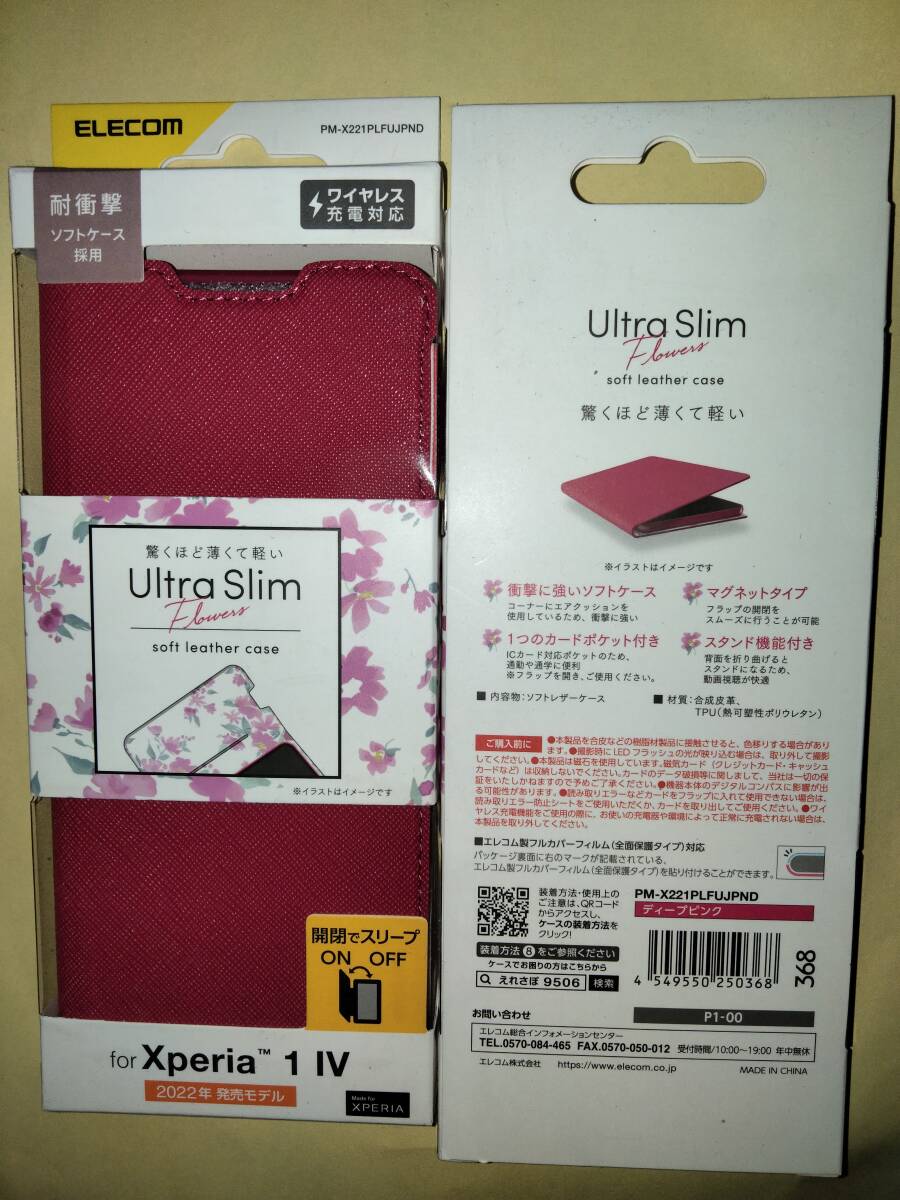 - ELECOM Xperia 1 IV SO-51C SOG06 ソフトレザーケース 薄型 磁石付 外側ディープピンク 内側花柄 本体の薄さ、軽さを損ねない薄型・超軽量