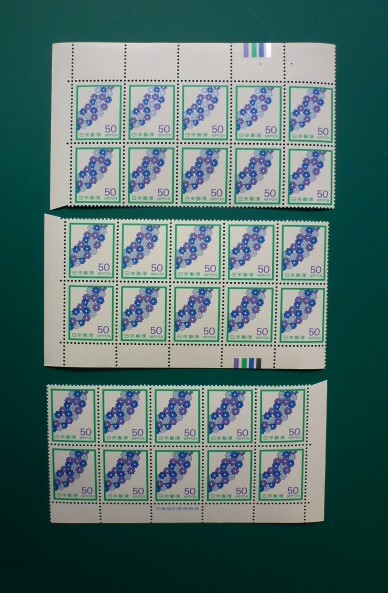 - 大蔵銘版より 50円 花輪 カラーマーク下と上と銘版 各10枚 未使用 完美品 K-1-7s