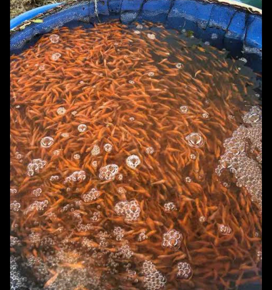 - 1日限定 格安 錦鯉稚魚 200匹 紅白 サイズ 7cm~15cm 生き餌 釣り餌 めだか モツゴ 子赤金 アロワナなど 熱帯魚の餌に