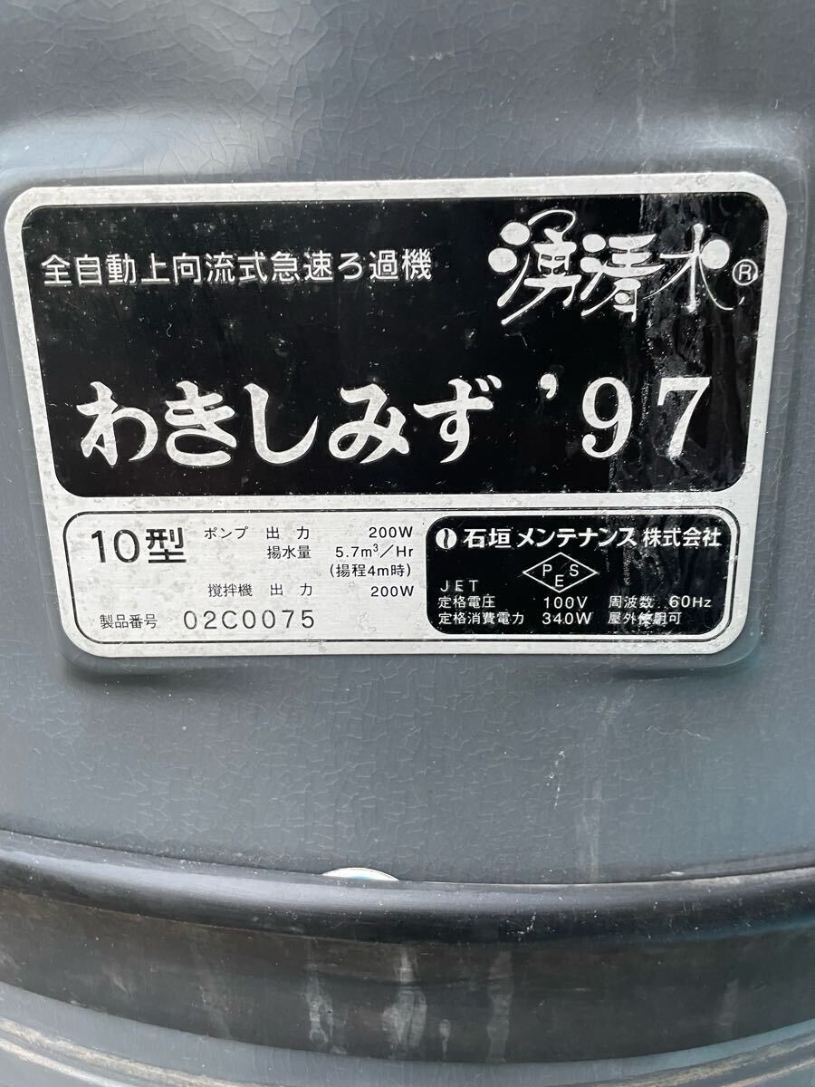 - 湧清水 わきしみず′97 10型 全自動上向流式急速ろ過機