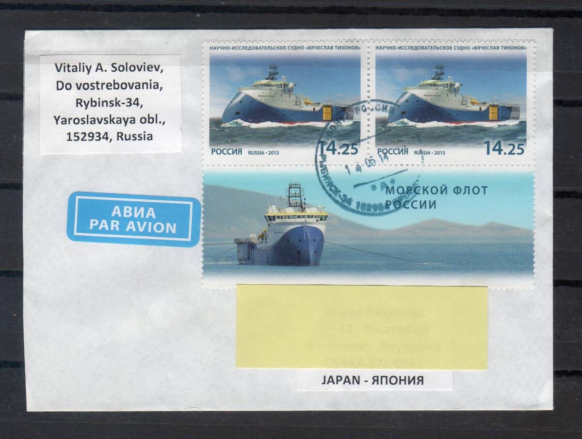 - ロシア2013年発行 調査船ヴャチェスラフ・チーホノフ号 ペア貼り 実逓カバー【説明参照】