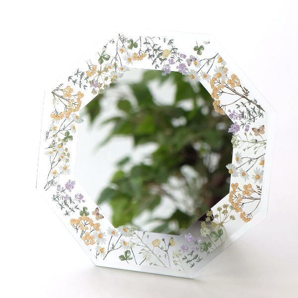 - 鏡 八角ミラー 壁掛け おしゃれ 卓上 壁掛けミラー ウォールミラー 八角ミラー フィールドフラワー 送料無料(一部地域除く) uwr1203
