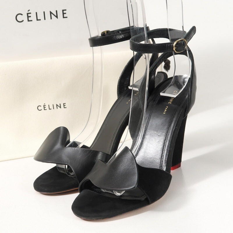- GS3975*イタリア製 CELINE セリーヌ フィービー期 Ruffle Sandals レザー ストラップサンダル 35(22cm相当) スエード切替 靴 ブラック