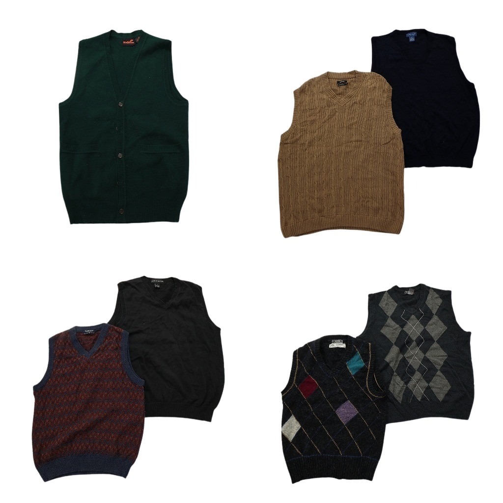 - 古着卸 まとめ売り ニットベスト セーター 7枚セット (メンズ M ) カーディガン アーガイル柄 総柄 Vネック 無地 NC3092 1円スタート
