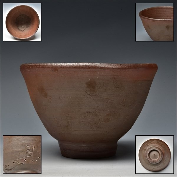 - SP5780 吉本正 備前 茶碗 抹茶碗 碗 茶器 茶道具 師 人間国宝 藤原啓