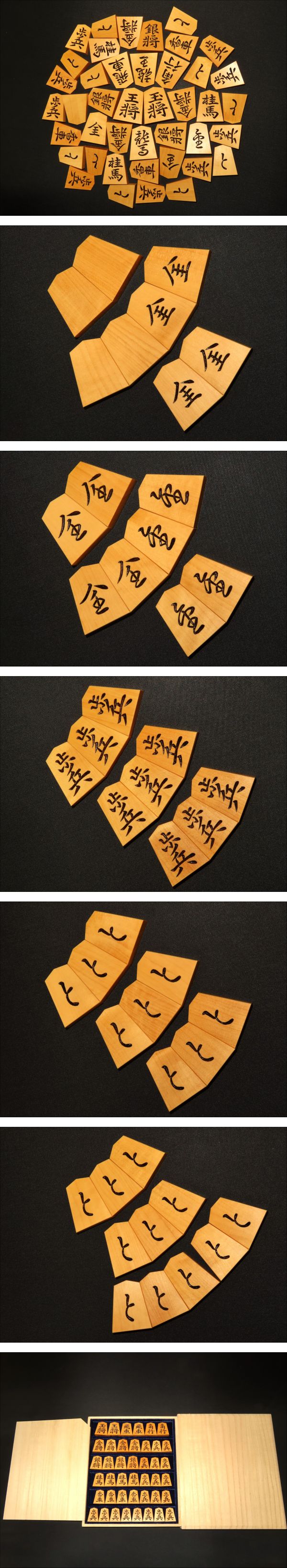 1000円スタート▲竹風作昇龍島黄楊上柾目彫将棋駒▲桐駒箱平箱付