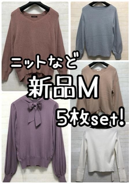 - 新品☆M♪優しいくすみカラー♪ニット・カットソー5枚まとめて♪☆Q502