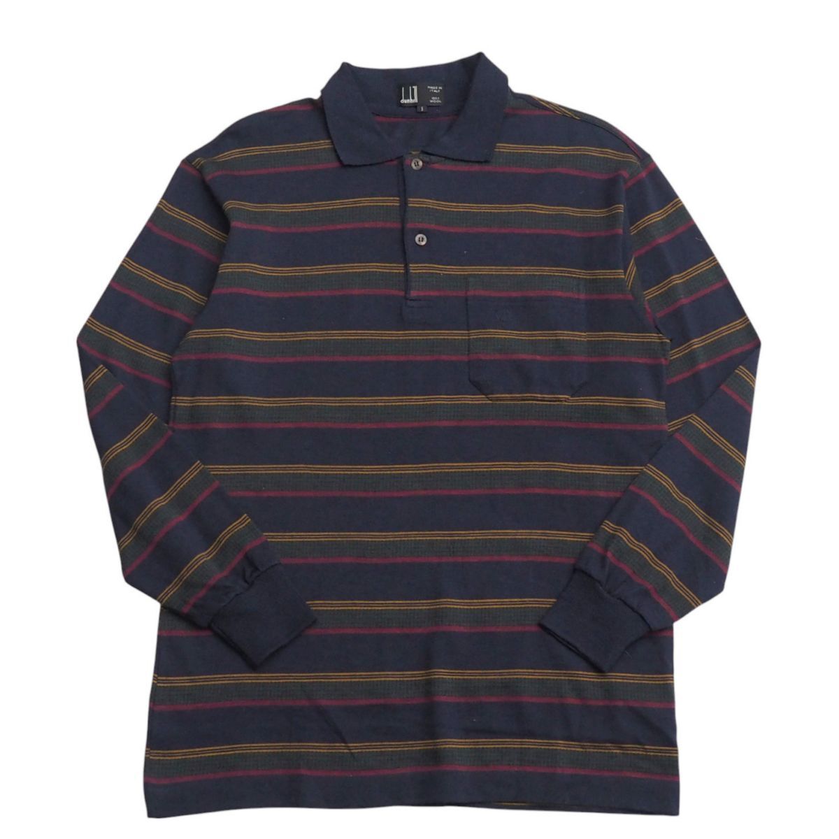 - T7855▽イタリア製 ダンヒル/dunhill/メンズS/ウールニット ポロシャツ/プルオーバー/長袖シャツ/ボーダー柄/ネイビー系