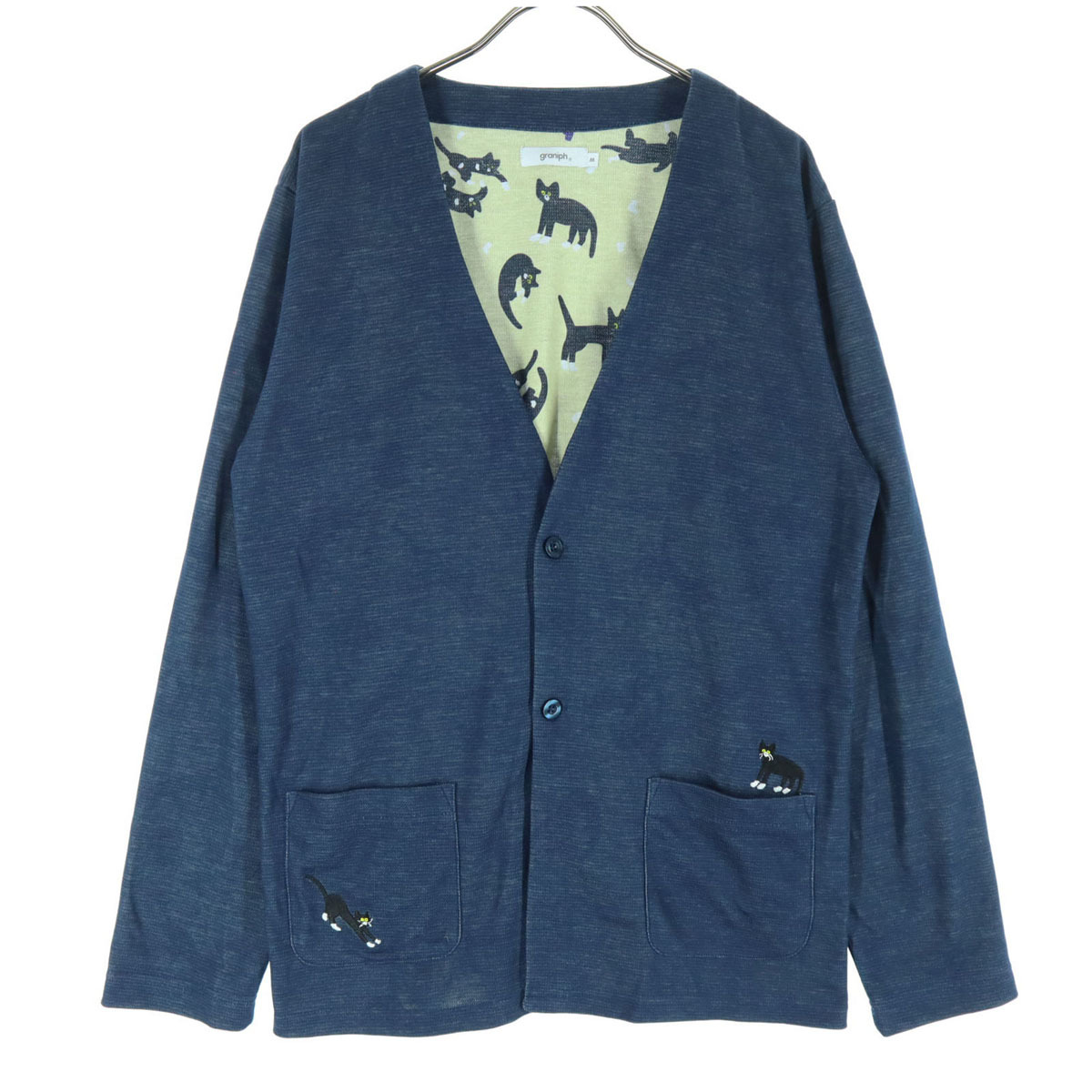 graniph グラニフ 刺繍 猫柄 長袖 カーディガン M ブルー メンズ