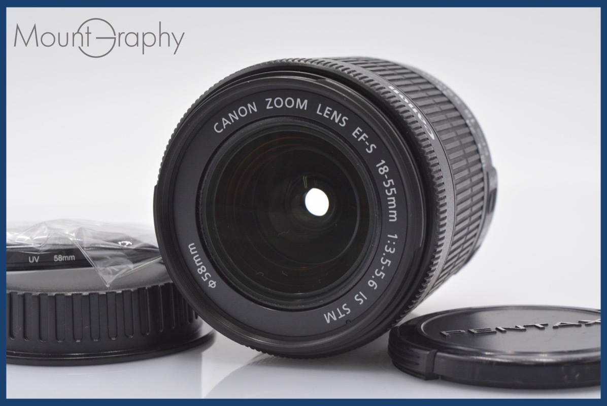 > ★良品★ キヤノン Canon EF-S 18-55mm F3.5-5.6 IS STM 前後キャップ&レンズフィルター付 ★完動★同梱可 #am148