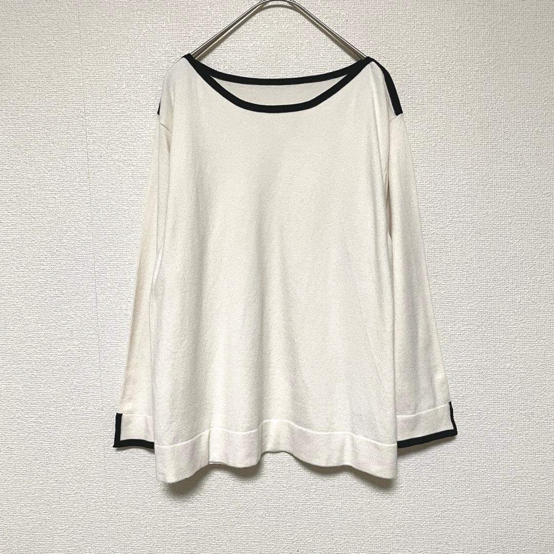 - qq303 バイカラー7分袖トップス/カットソー/スリット/アイボリー×ブラック