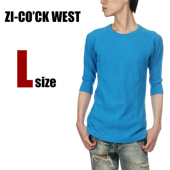> 【新品】ジーコック ウェスト 五分袖 サーマル Tシャツ L メンズ レディース ブルー 青 ZI-CO'CK WEST 厚手 5分丈袖 無地