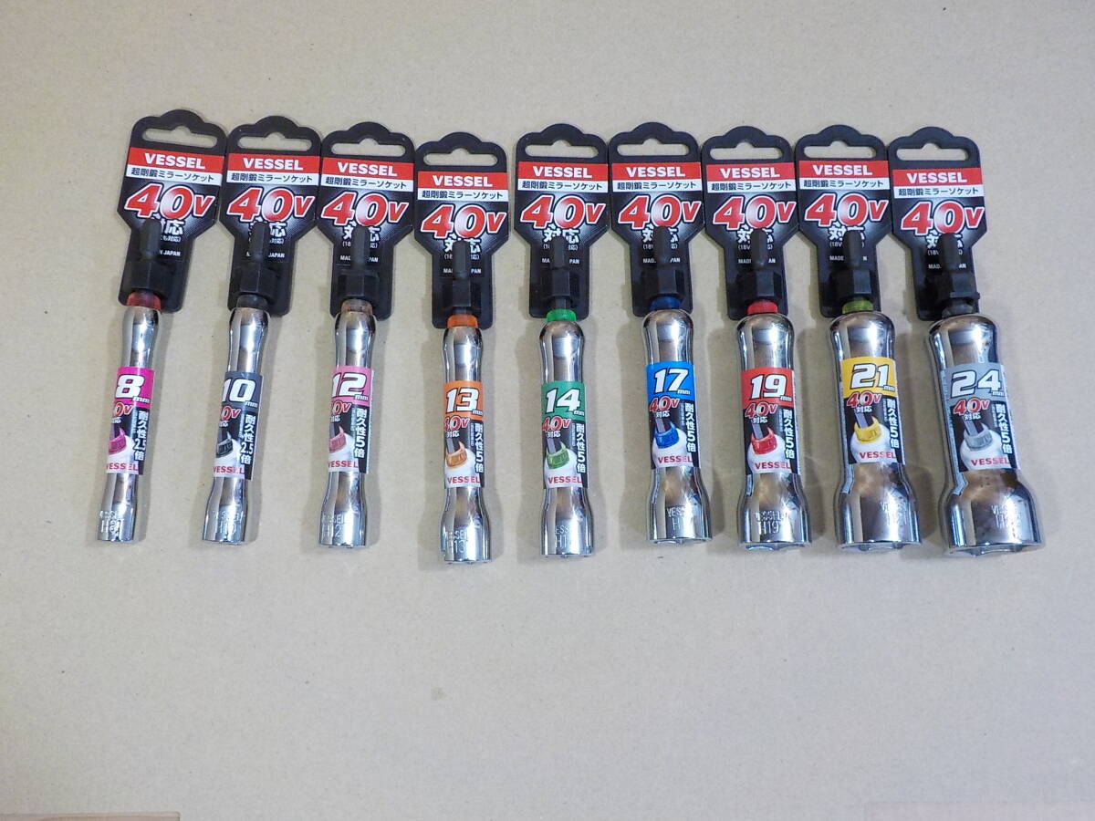 > d675★VESSEL 超剛鍛 ミラーソケット9個まとめて 8~24mm 六角軸40V対応 ベッセル 8 10 12 13 14 17 19 22 24