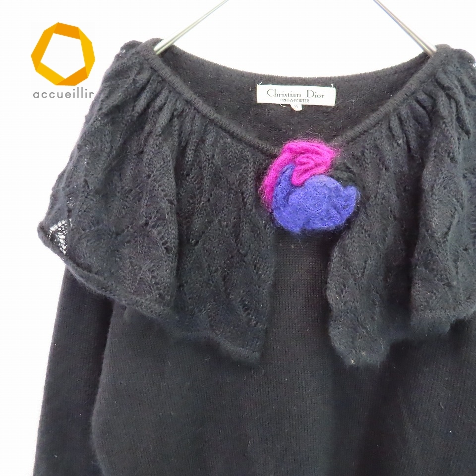 【ブランド】クリスチャンディオール ChristianDior 【アイテム】ニット・セーター【表記サイズ】M【平置き実寸】肩幅:約 44cm袖丈:約 58cm身幅:約 49cm着丈:約 55cm【状態】やや傷や汚れあり【備考】コサージュはブローチ型で取り外し可能です。ブランドタグにやや汚れがございます。【色】ブラック系【素材】毛 70% ナイロン 30%★当店の商品はすべてリユースアイテムとなります。特質上、些細なダメージは記載しておりませんので着用に問題のない使用感、着古した雰囲気などはご了承くださいませ。キーワード/アクイール/古着/used/ビンテージ/ヴィンテージ/昭和/レトロ/ハナエモリモチーフ/プレタポルテ