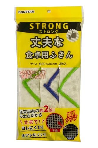 > ボンスター 丈夫な食卓用ふきん STRONG 糸が太く丈夫 ヨレにくい ホツレにくい のり落とし不要で手間いらず 約30×30cm 3枚入り F