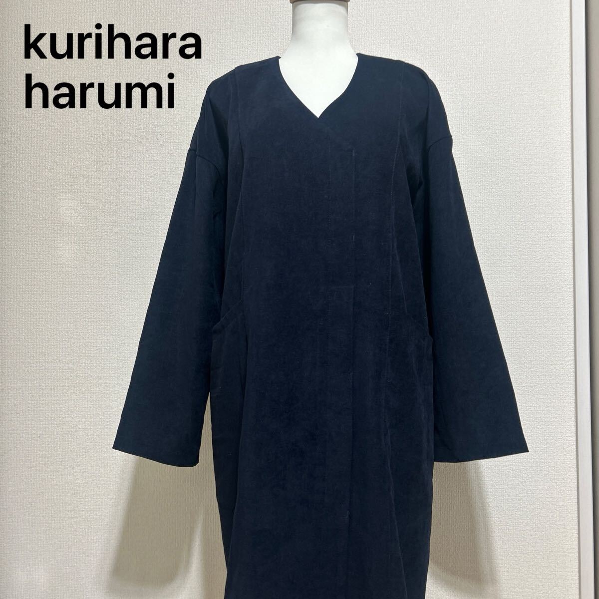 > 新品 タグつき 未使用品 kurihara harumi くりはらはるみ ロングコート ロング 長袖 無地 Vネック シンプル ネイビー 紺色 Lサイズ