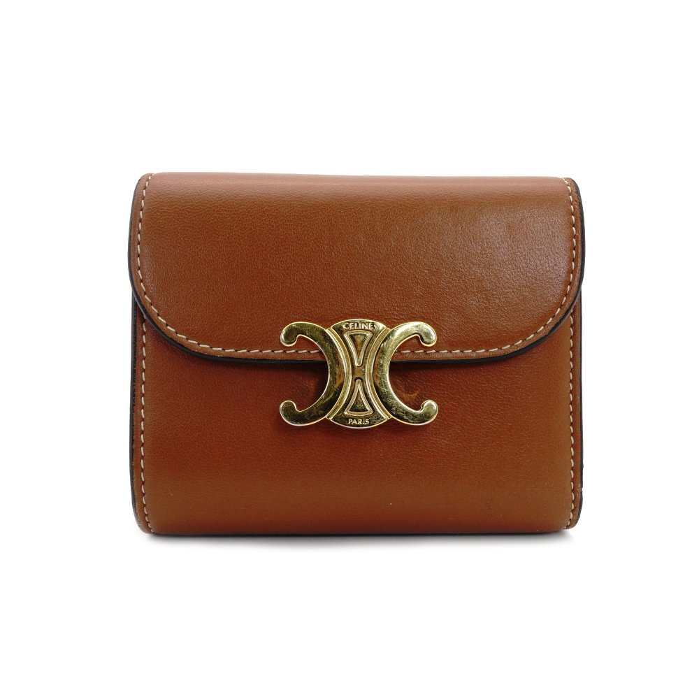 - セリーヌ CELINE トリオンフ 折り財布 レザー ブラウン 三つ折り財布 ミニ財布 茶色 ゴールド金具 箱付き 7-9-461