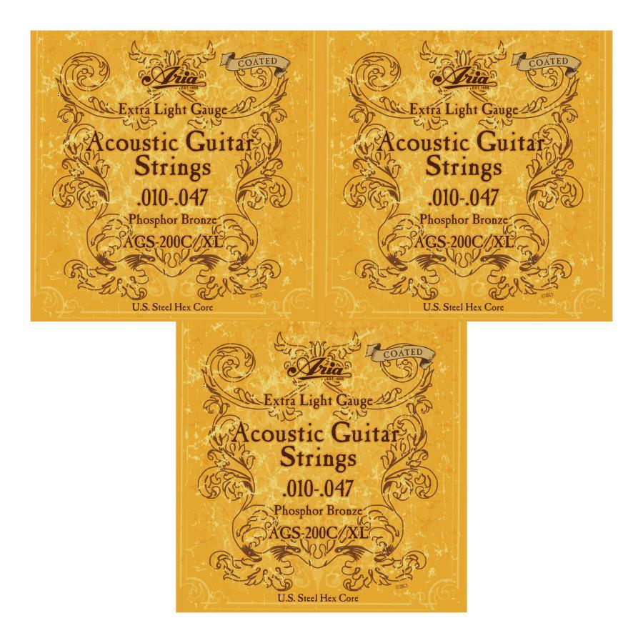 > [アコギ弦×3セット] ARIA AGS-200C/XL [10-47] アコースティックギター用 コーティング弦 フォスパーブロンズ アコギ弦