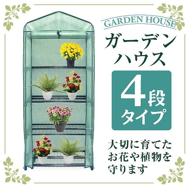 - 新品未使用 ビニールハウス 4段 ガーデンハウス 家庭菜園 ミニ 温室 フラワーハウス スタンド ラック 雨避け 花壇 園芸 雨 風 害虫対策