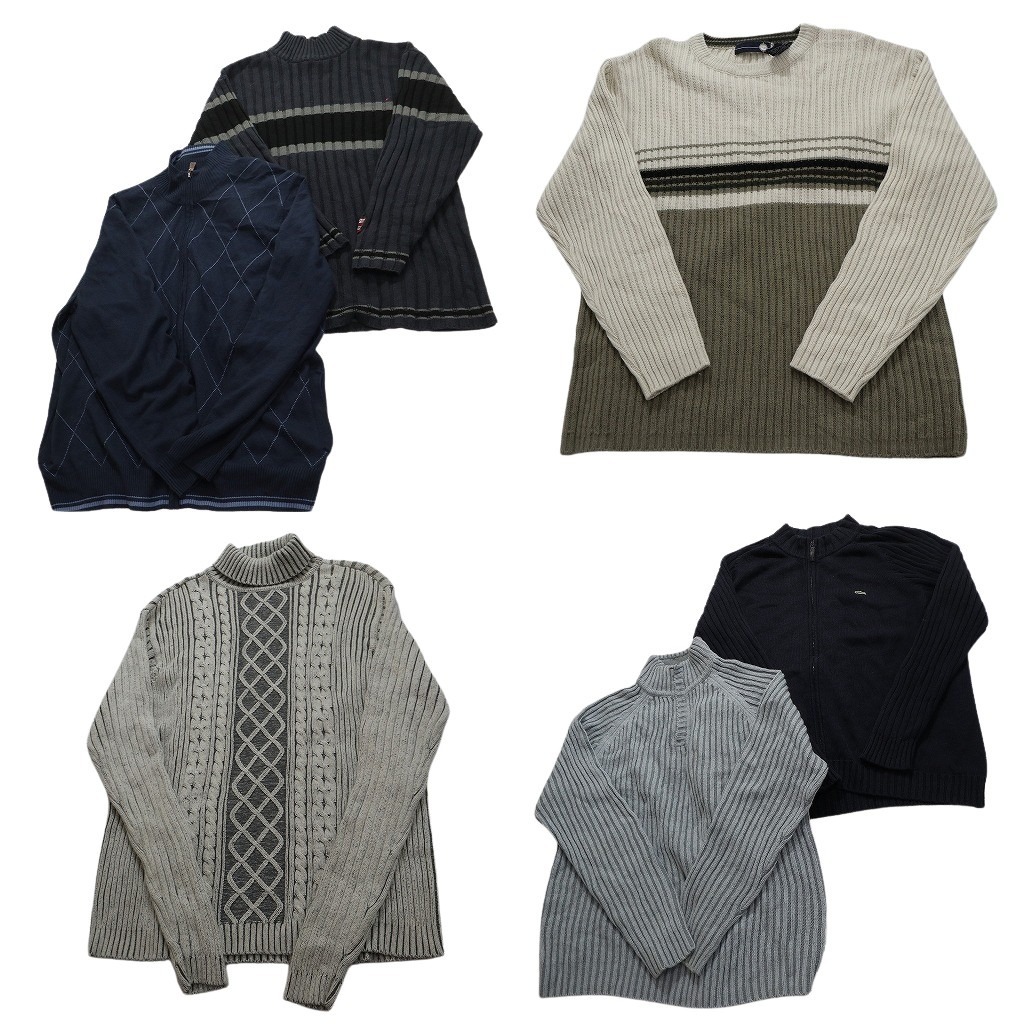 > 古着卸 まとめ売り ドライバーズリブニット セーター 6枚セット (メンズ XL ) ライン アーガイル柄 ケーブル編み NC3108 1円スタート