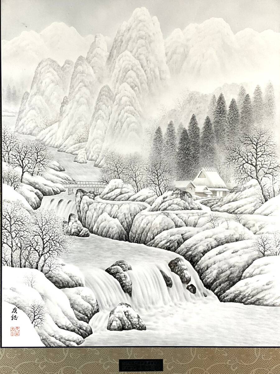 真作■岩彩・正絹■人見友紀■『丹波初雪』■10号大型■伝説の逃亡画家写実 入手困難画家■額付絵画 10d拍卖
