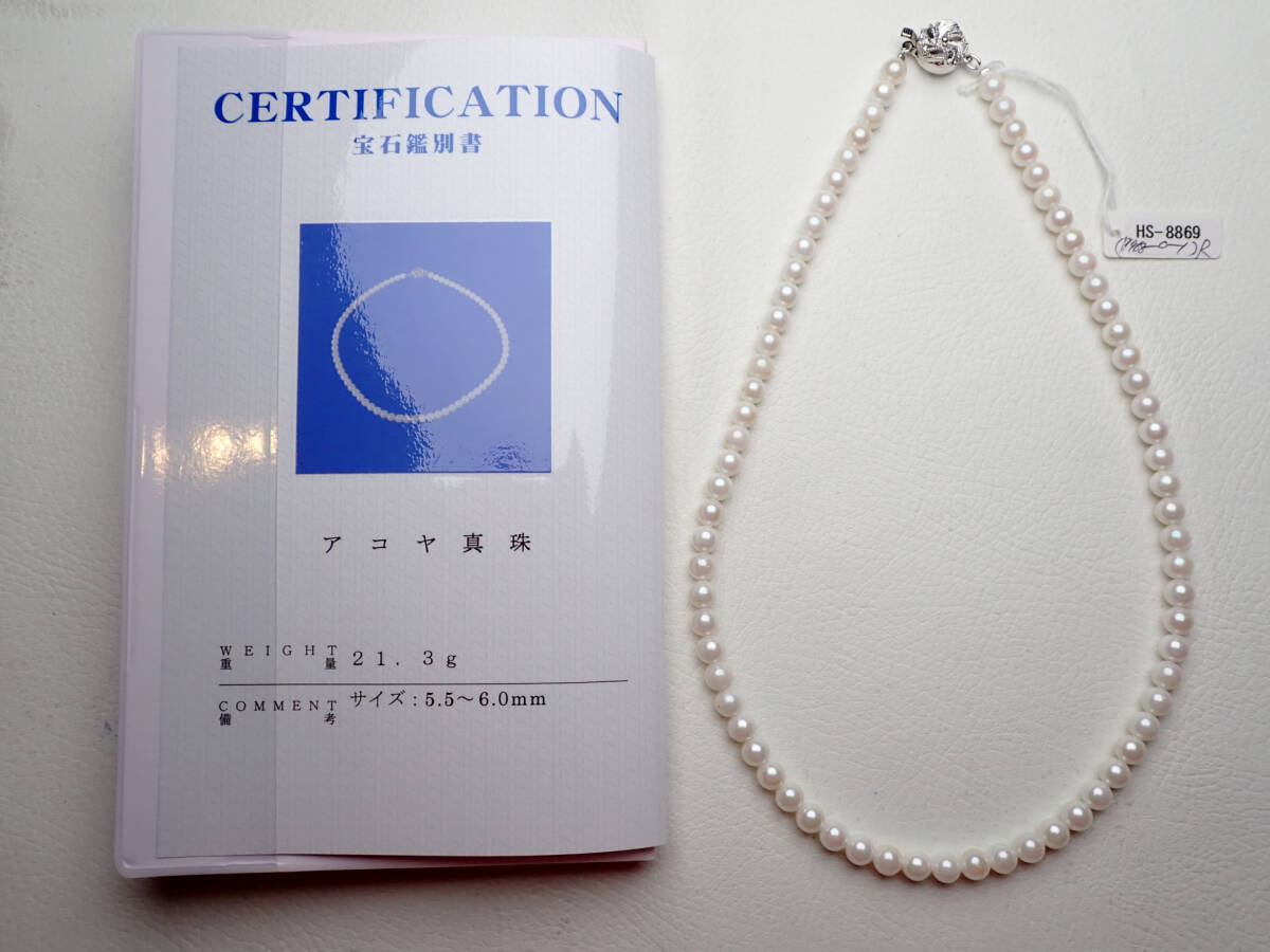 - 9●アコヤ真珠 ネックレス 5.5~6.0mm 21.3g 鑑別書付